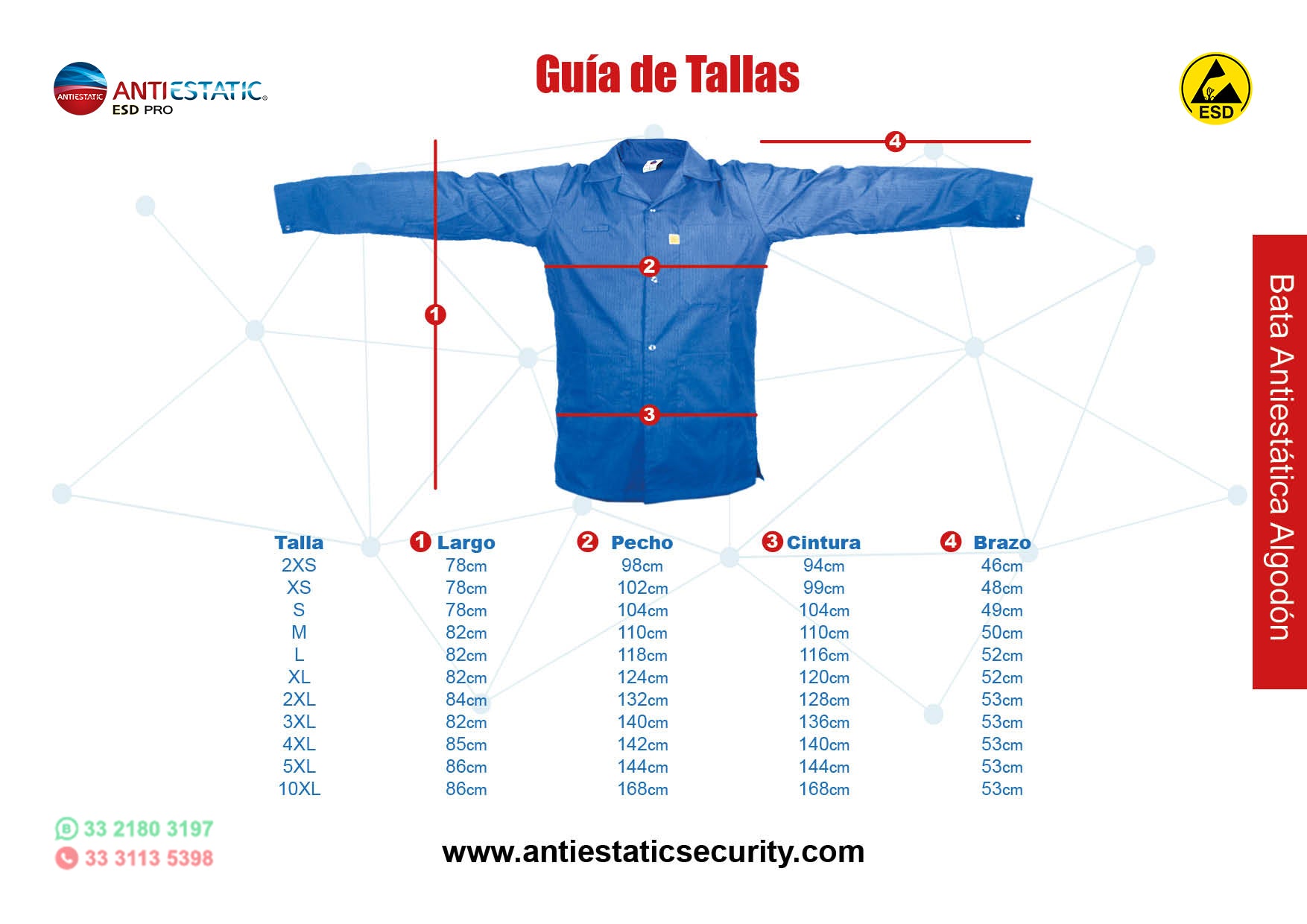 Bata Antiestática estilo: BA01RF. Marca: Antiestatic ESD PRO
